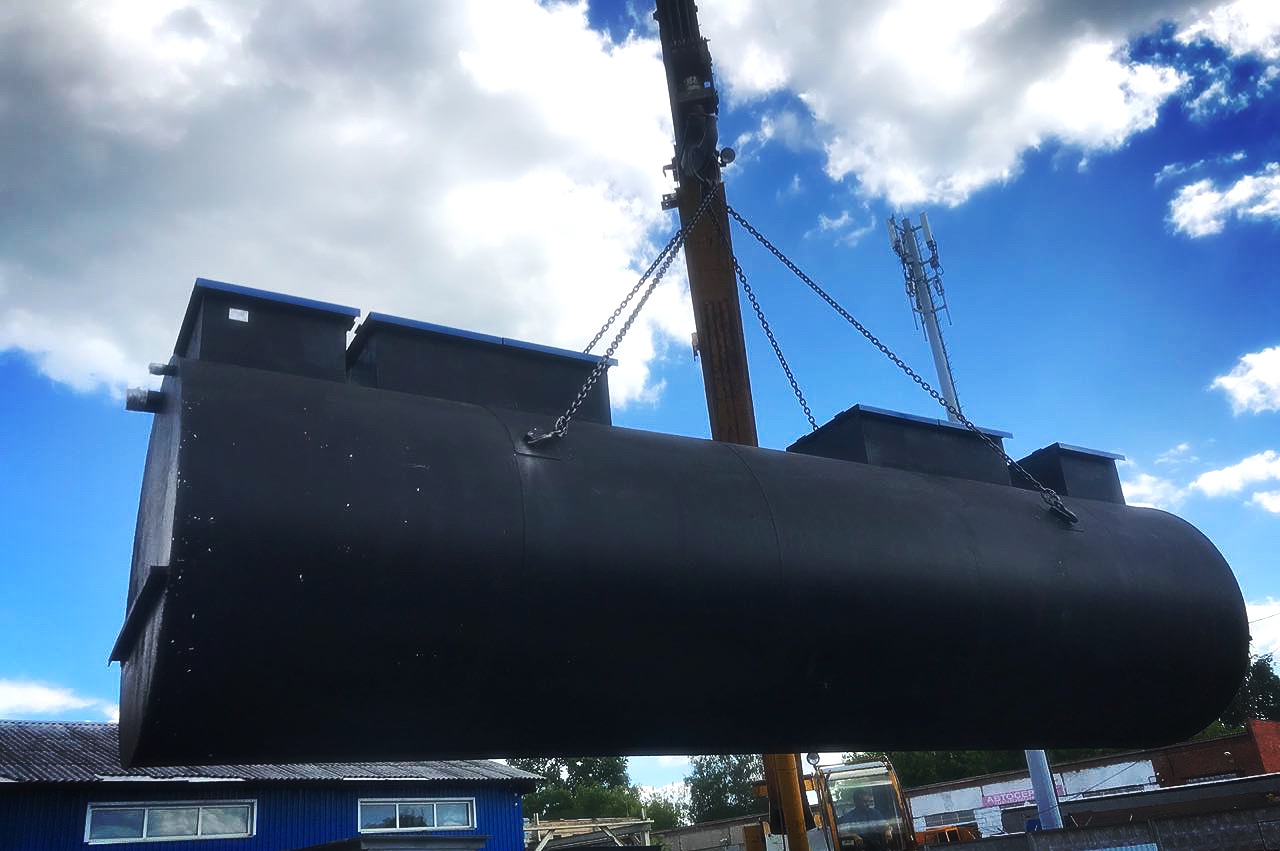 Габариты очистного сооружения: длина 8400 / диаметр 2400 / вес 4800 кг.